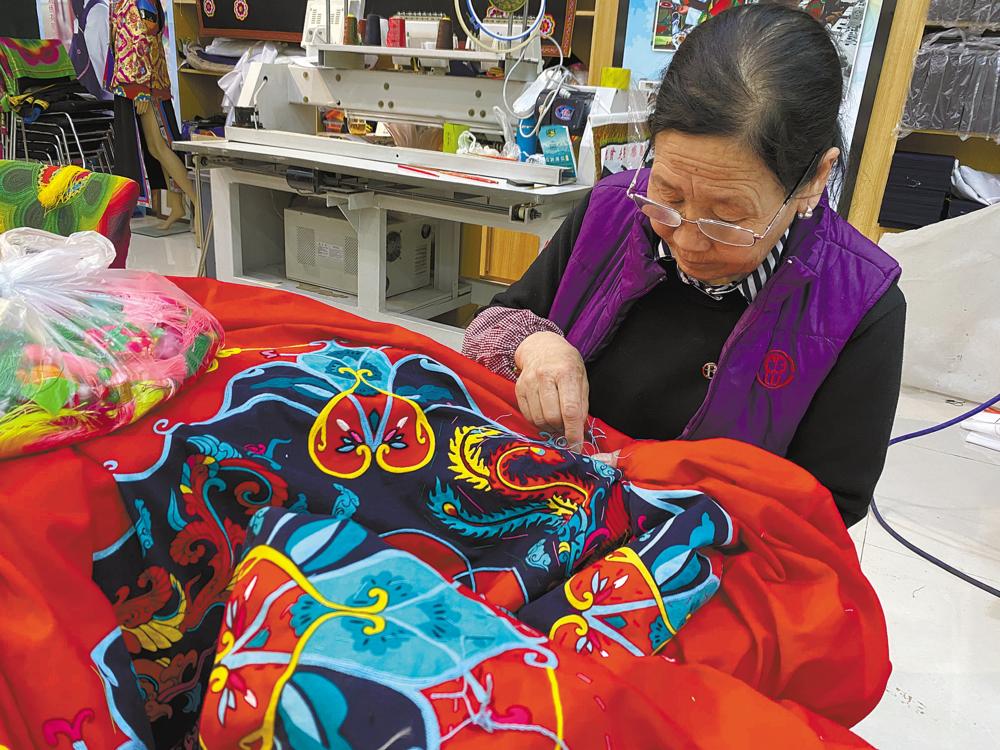 “我剛接觸盤(pán)繡的時(shí)候,那個(gè)時(shí)候的盤(pán)繡只是土族婦女服飾上的一種裝飾,僅僅而已,它沒(méi)有更多和市場(chǎng)的結(jié)合。2015年,盤(pán)繡開(kāi)始逐漸和文旅融合,在互助縣的各個(gè)景點(diǎn)進(jìn)行繡品的投放。在市場(chǎng)需求慢慢擴(kuò)大后,盤(pán)繡輻射到全省將近30多個(gè)景點(diǎn),作為旅游紀(jì)念品進(jìn)行推出?!鼻嗪K芈」么汤C有限公司總經(jīng)理蘇曉莉說(shuō),可以說(shuō),盤(pán)繡就是看中了旅游市場(chǎng)發(fā)展的前景。